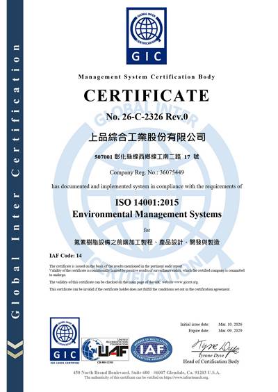 於2024年度推動ISO 14001環境管理系統,並於同年度12月經第三方外部稽核獲得認可。秉持永續經營理念,將持續投入環境保護相關行動,積極回應氣候變遷與環境保護等議題,致力於與利害關係人共同創造長期永續價值。